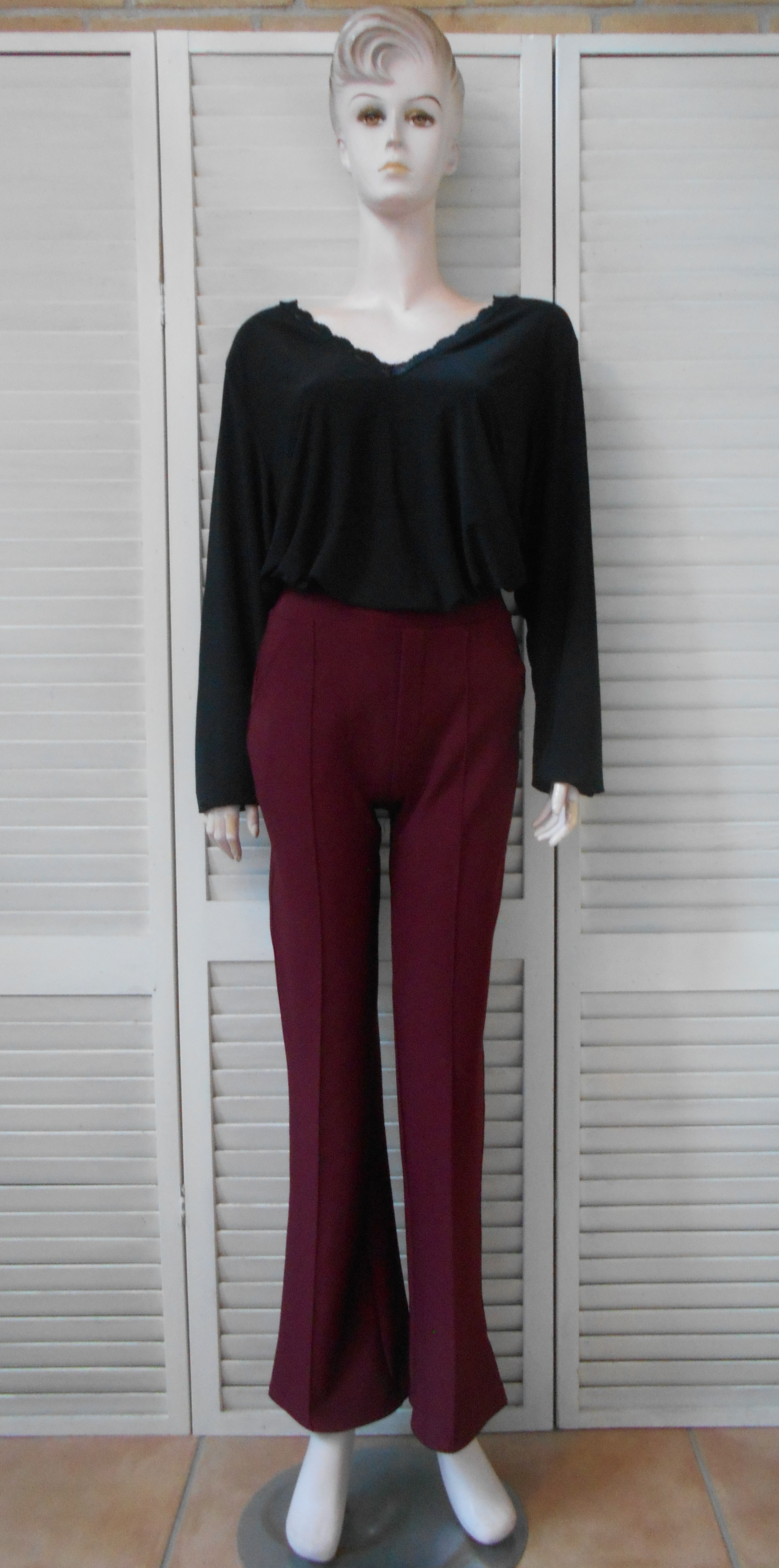 Deze stijlvolle flair stretch broek van Annuo Fashion combineert elegantie met ultiem draagcomfort. Uitgevoerd in een tijdloze uni bordeauxkleur, vormt deze broek de perfecte basis voor zowel casual als geklede outfits.