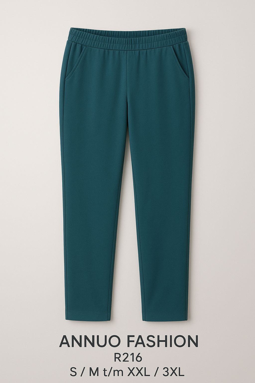 Ontdek de perfecte mix van comfort en stijl met deze dames stretch broek van Annuo Fashion. Uitgevoerd in een elegante uni petrolkleur, combineert deze broek een tijdloze uitstraling met een moderne pasvorm.