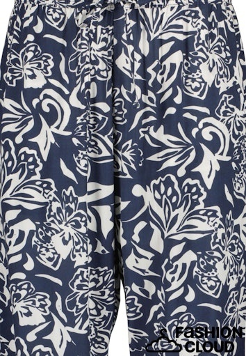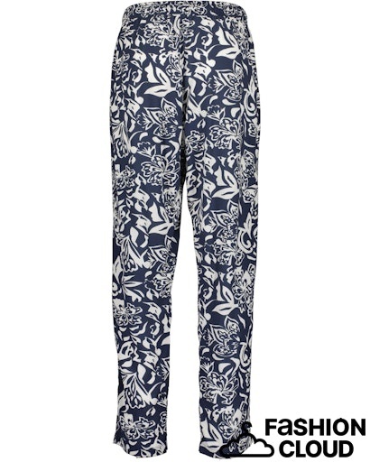 Blue Seven - Dames Pantalon - Blauw-witte Allover Print- Elastische Tailleband