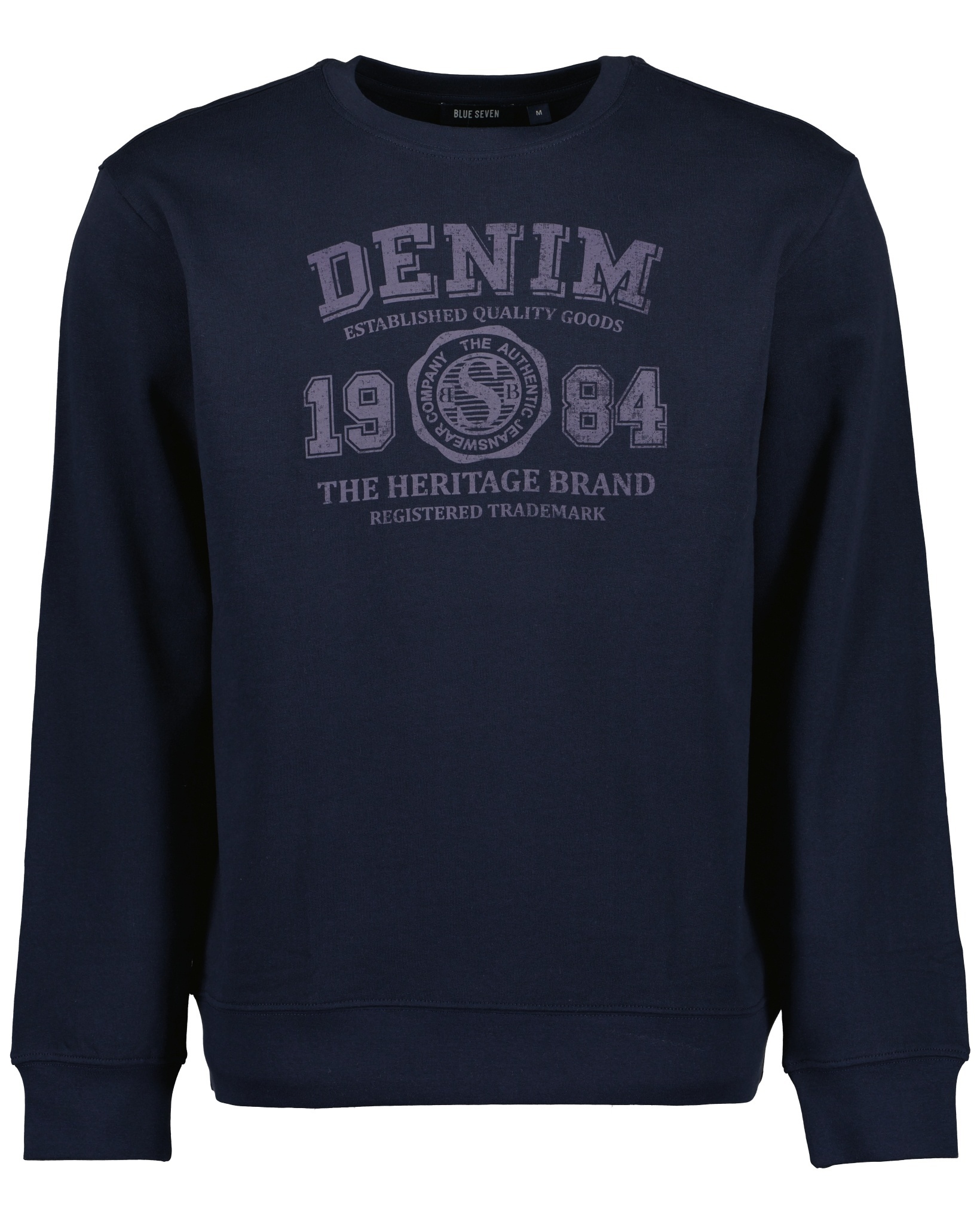 Comfort en stijl komen samen in deze Blue Seven heren sweater in een stijlvolle navy blauwe kleur. De sweater is gemaakt van 100% hoogwaardig katoen, wat zorgt voor een zachte, ademende en comfortabele pasvorm. De ronde hals en de boorden aan de mouwen en onderkant geven het model een klassieke uitstraling met een sportieve touch.