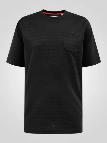De D555 CHATTAN heren T-shirt is dé perfecte keuze voor de moderne man die comfort en stijl wil combineren in een plussize uitvoering. Dit uni zwarte T-shirt heeft een subtiel ingeweven visgraadpatroon dat zorgt voor een luxe en eigentijdse uitstraling. Ideaal voor zowel casual als nettere gelegenheden.