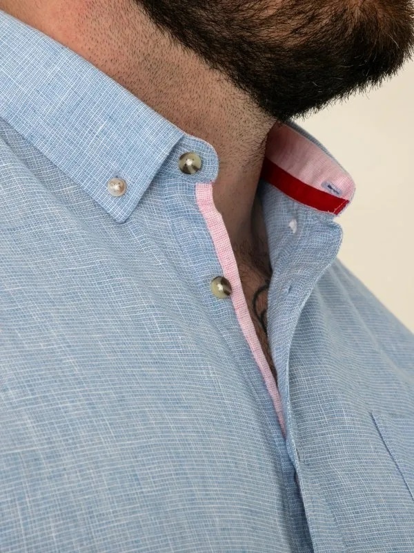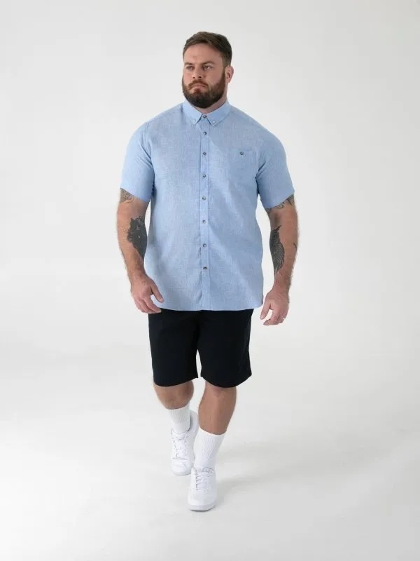 D555 - Clarke - Plussize - Overhemd - Lichtblauw - Linnen - Korte mouwen