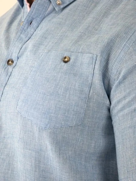 Het overhemd is gemaakt van een hoogwaardige mix van 82% katoen en 18% linnen, waardoor het heerlijk ademend en licht aanvoelt. Ideaal voor warme dagen of wanneer je een frisse, nette outfit wilt dragen. De button-down kraag geeft het overhemd een nette en moderne uitstraling, terwijl de knoopsluiting en het praktische borstzakje zorgen voor een klassieke afwerking.