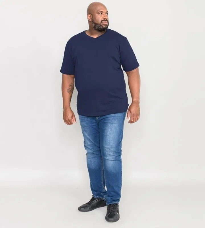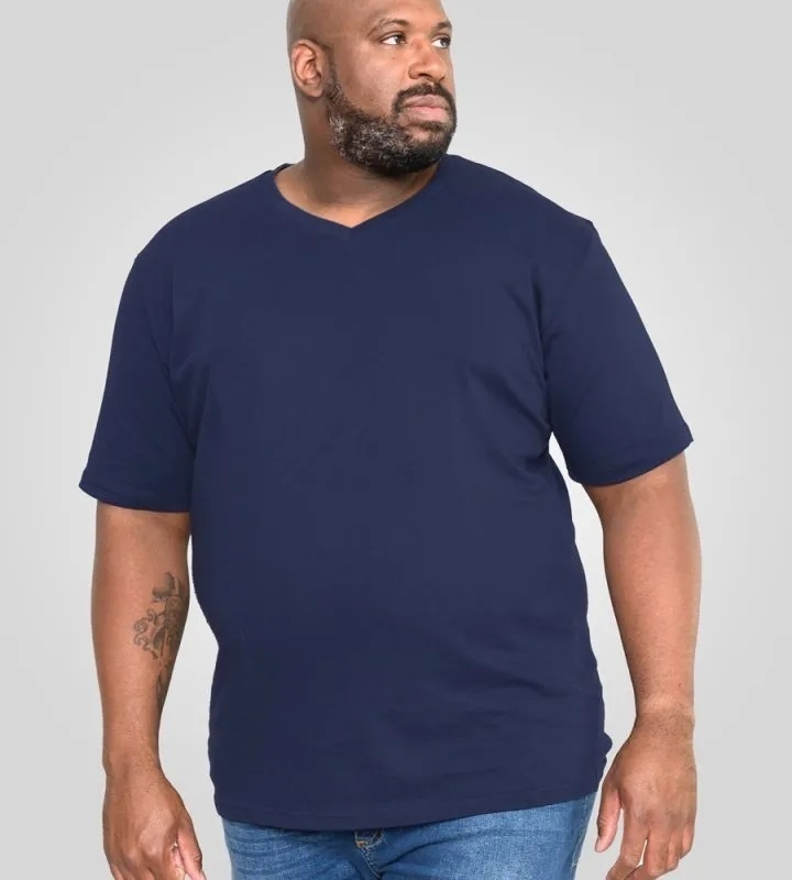 D555 - SIGNATURE - Heren Plussize V-hals Shirt - Uni - Navy