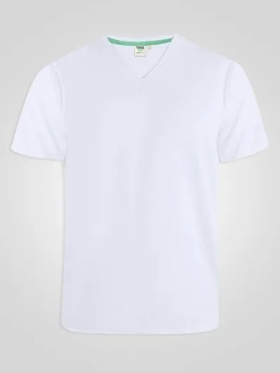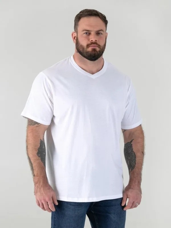 D555 - SIGNATURE - Heren Plussize V-hals Shirt - Uni - Wit