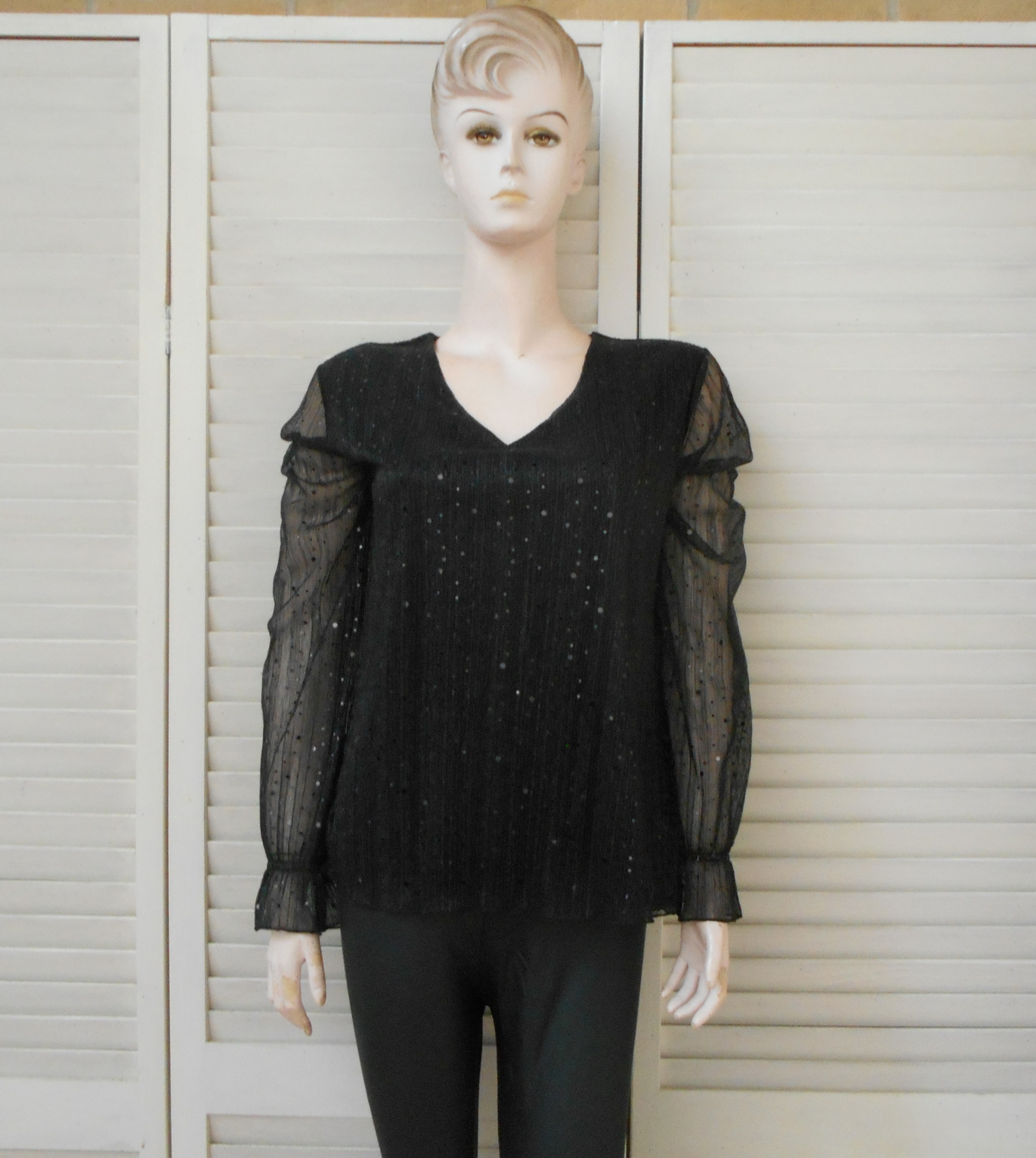 Esperance - Dames Shirt - glitter zwart - V-hals