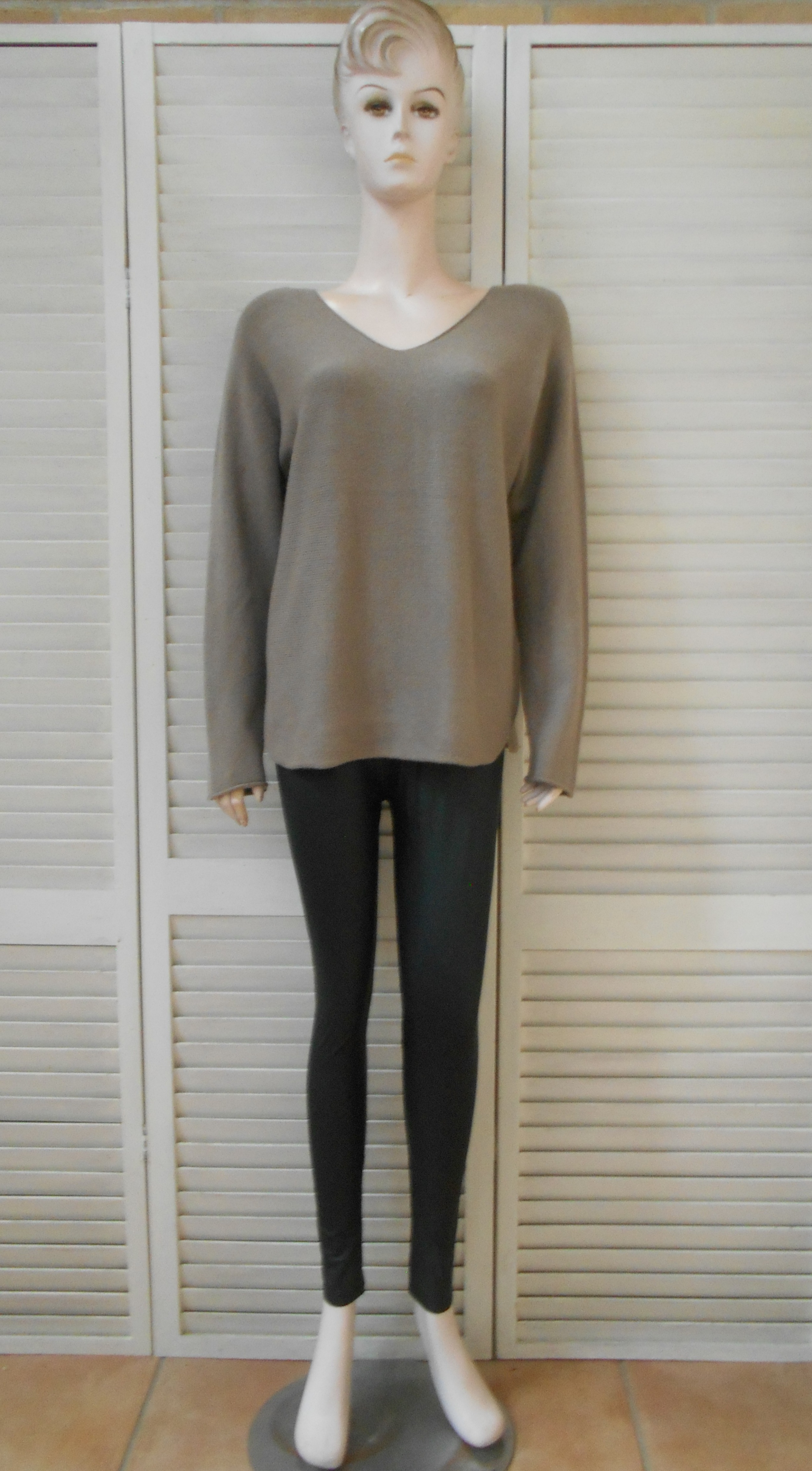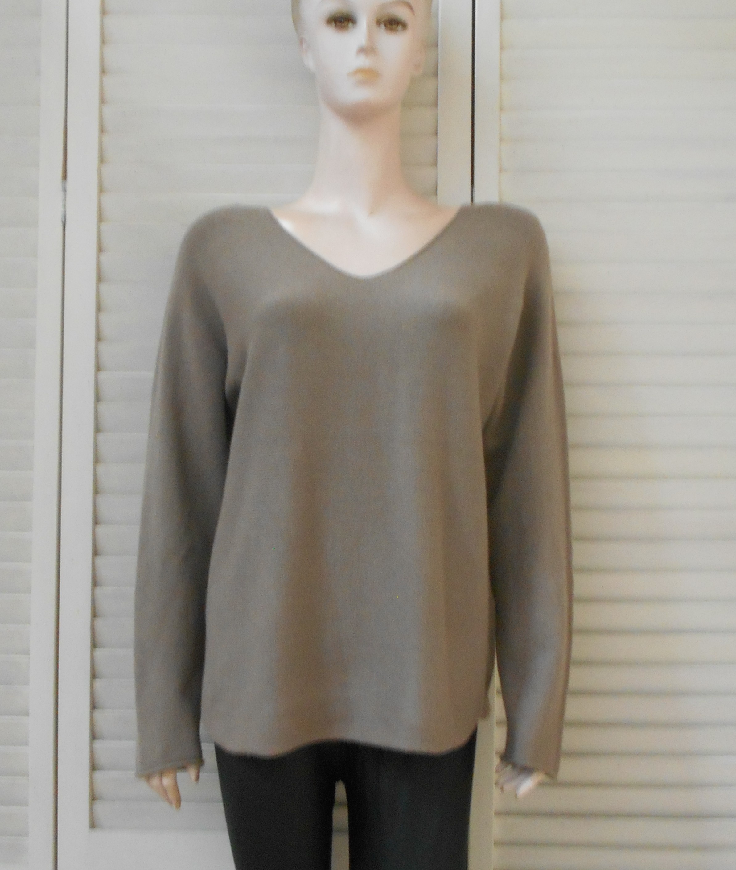 New Collection - Dames Shirt - Taupe - V-hals - Lange Mouwen
