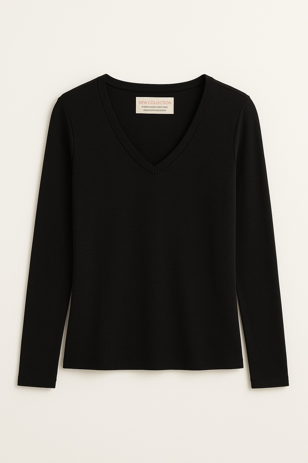 New Collection - Dames Shirt - Zwart - V-hals - Lange Mouwen