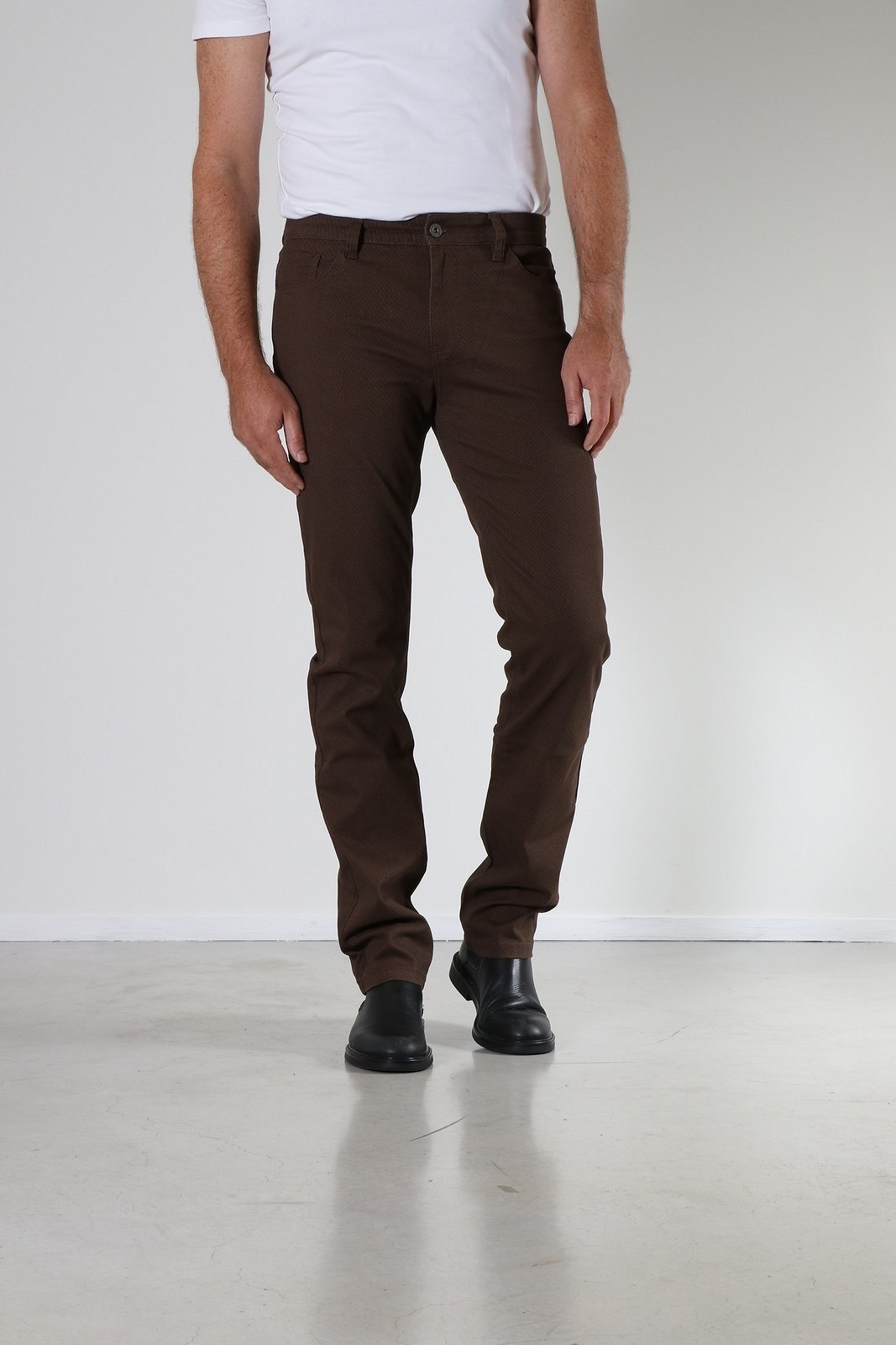 New Star NYON - Heren Printed Stretch Twill Broek - Bruin - Straight Leg