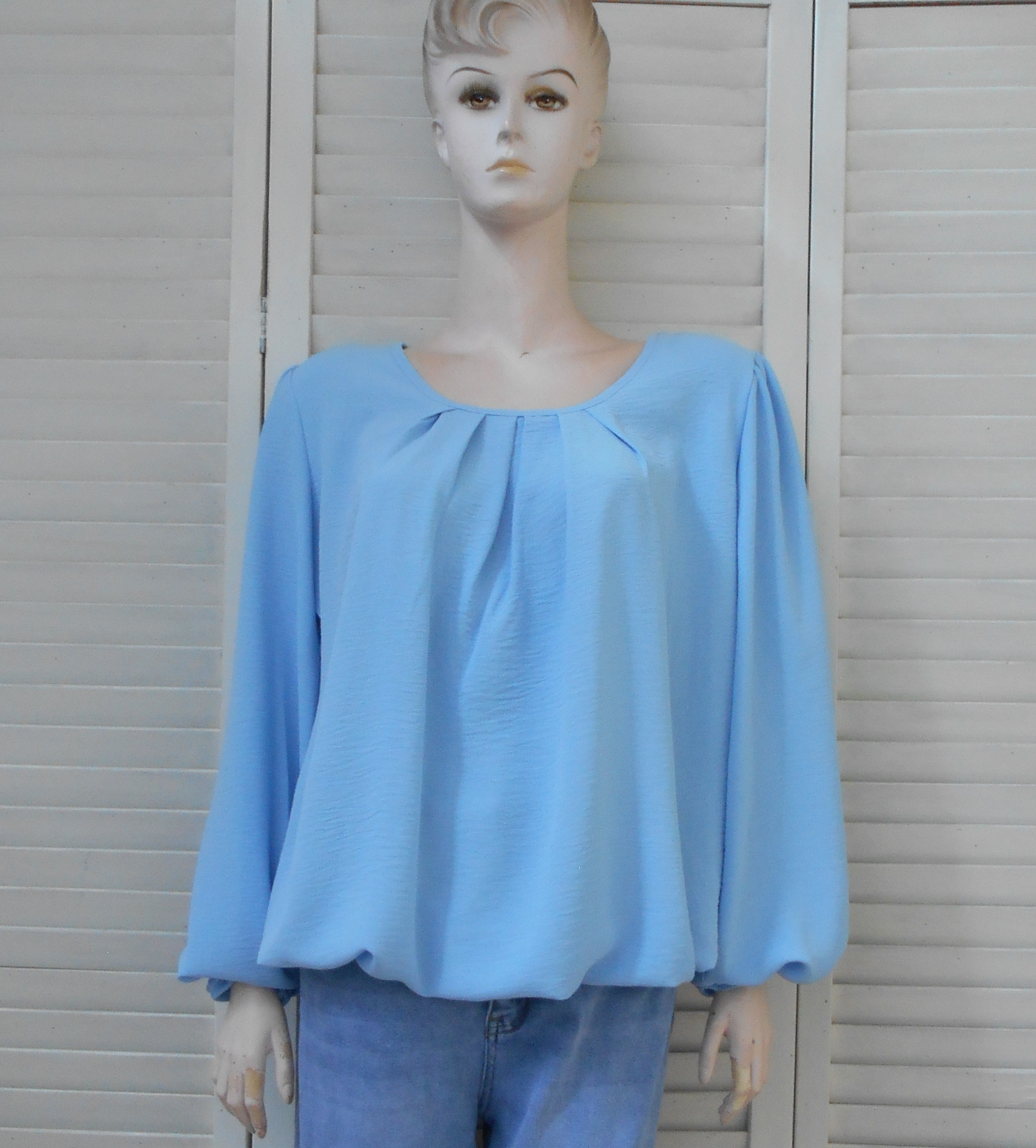 Dankzij het elastiek aan de onderzijde bloest het shirt mooi, waardoor het een flatterende pasvorm krijgt. De wijde ronde hals geeft een elegante en moderne uitstraling, terwijl de lange mouwen met elastiek aan de manchetten zorgen voor extra comfort en een speels effect.