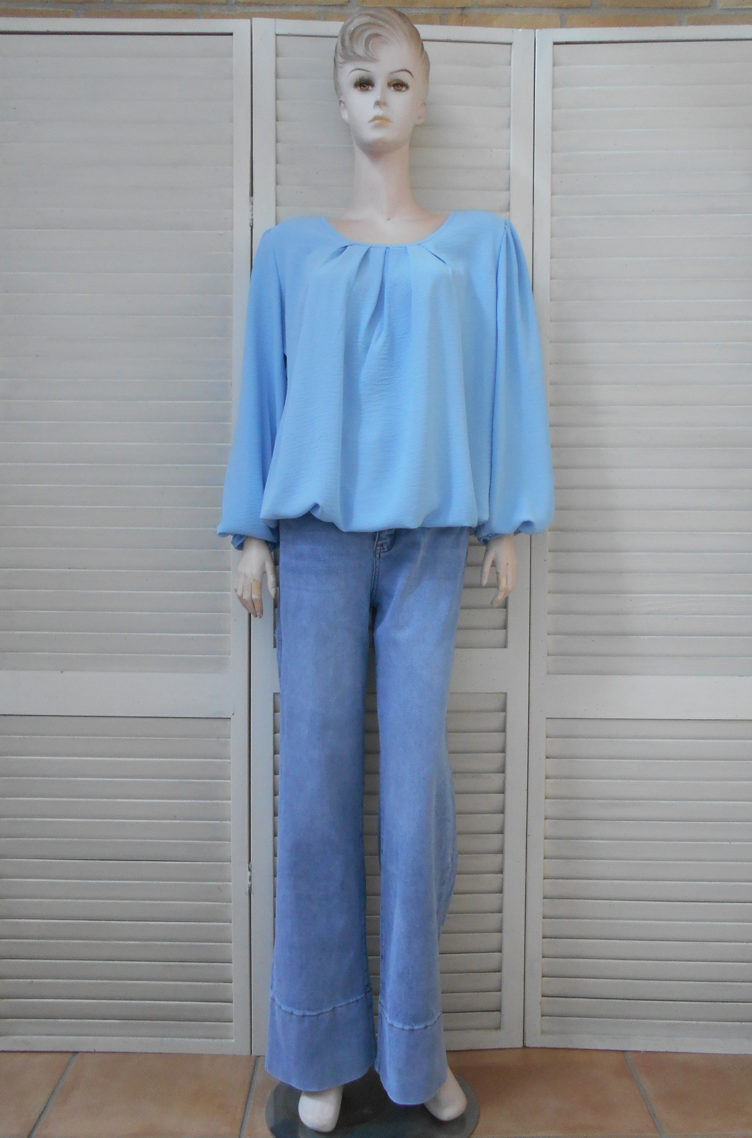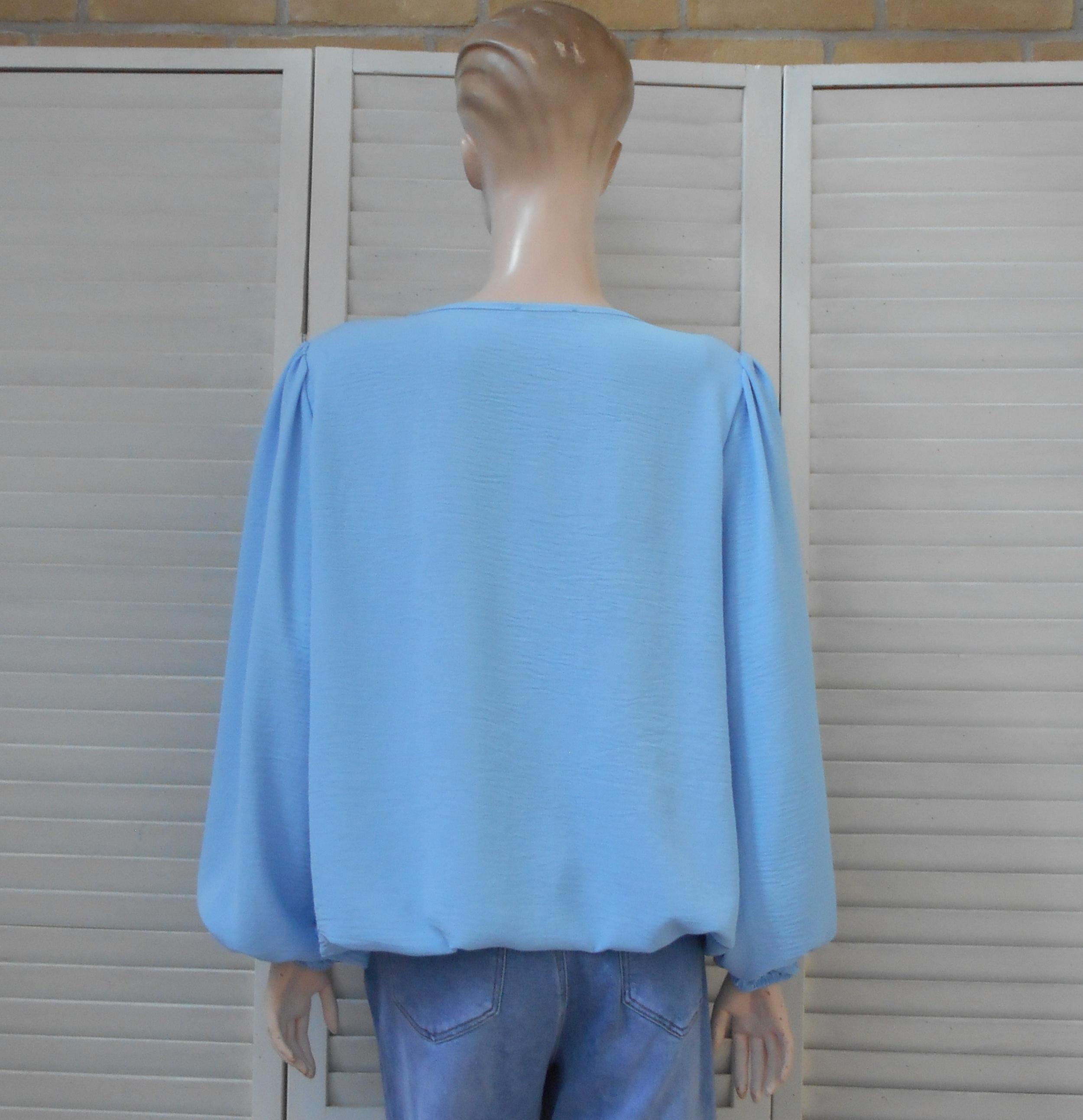 OLM51 - Dames Shirt - Lichtblauw - Elastiek Aan Onderzijde - Ronde Hals