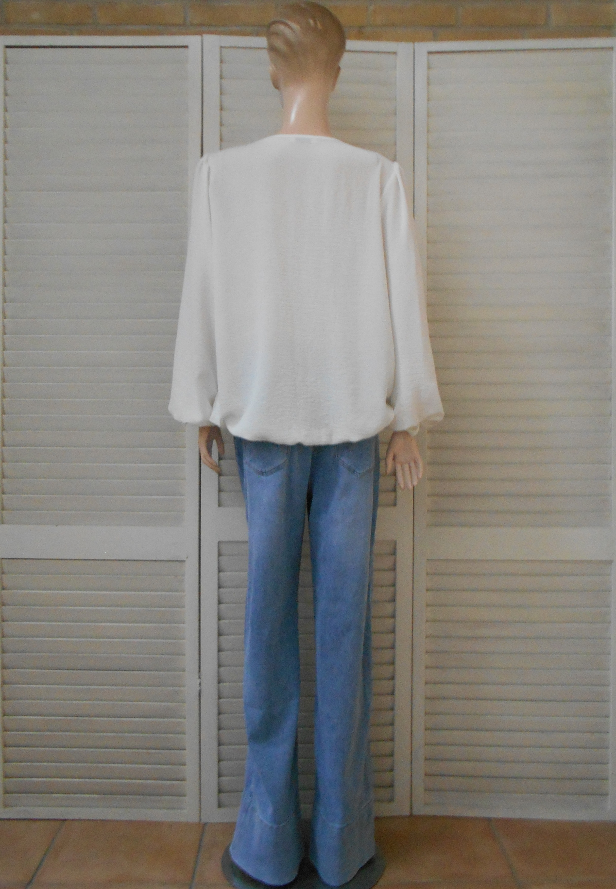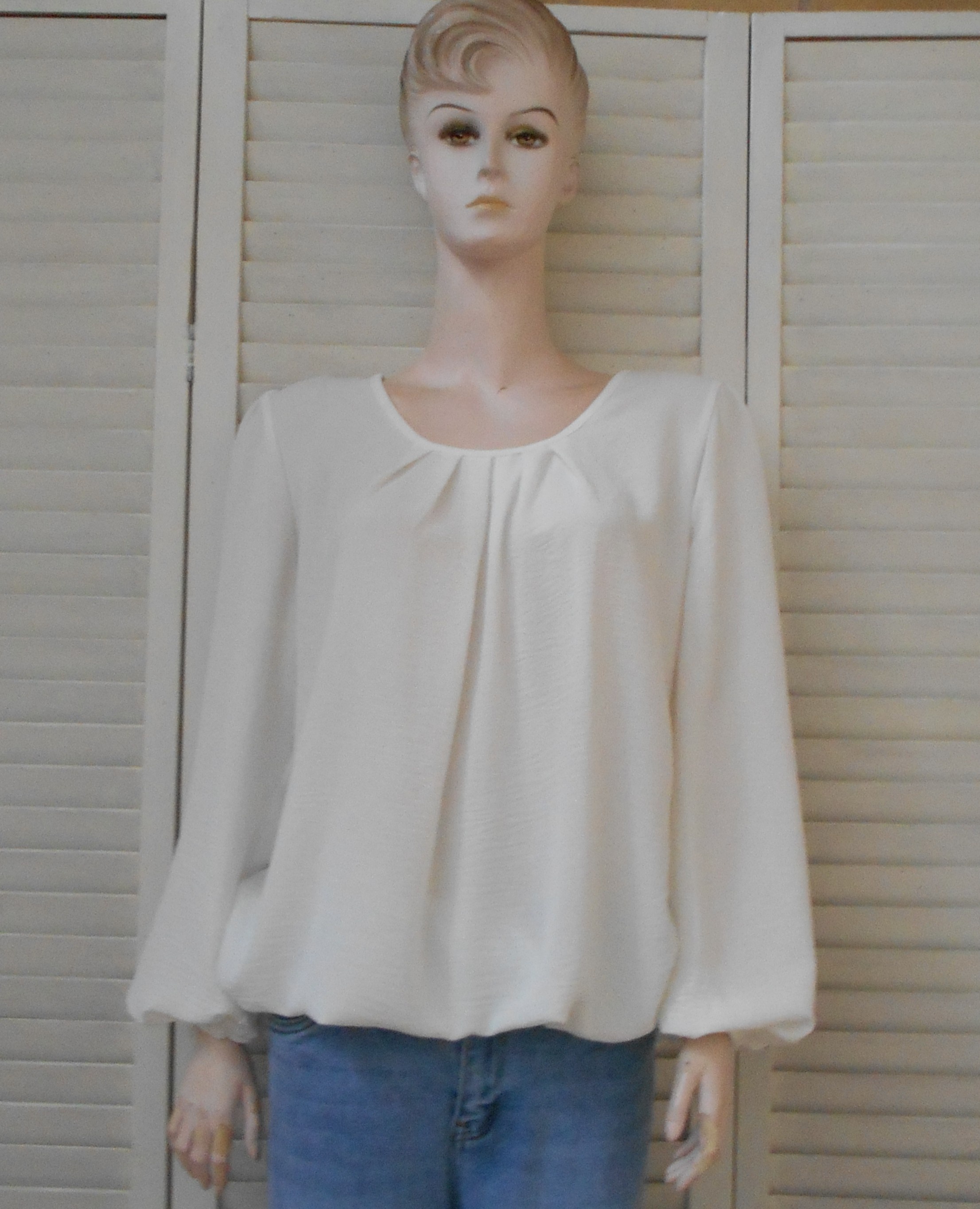 OLM51 - Dames Shirt - Off-white - Elastiek Aan Onderzijde - Ronde Hals