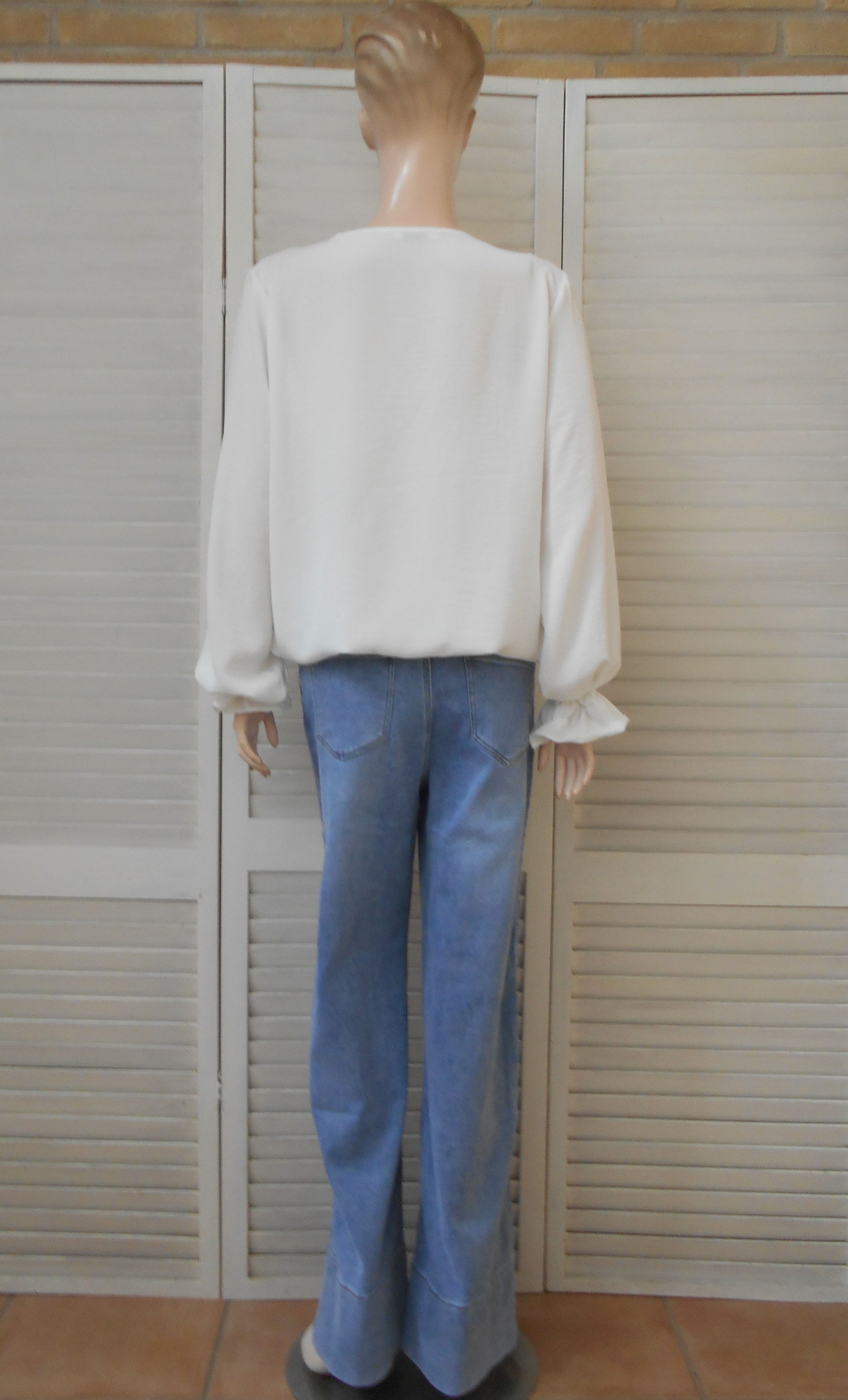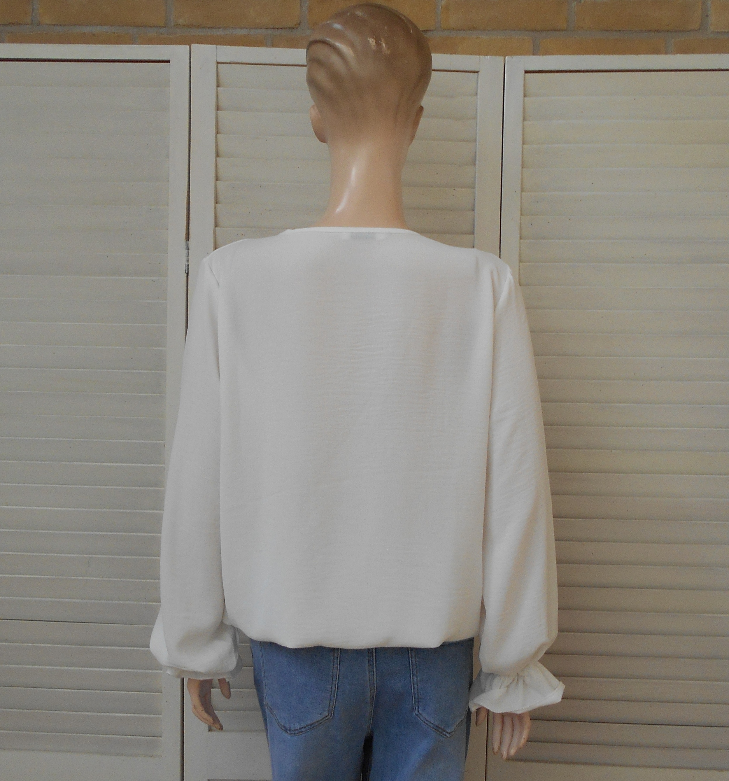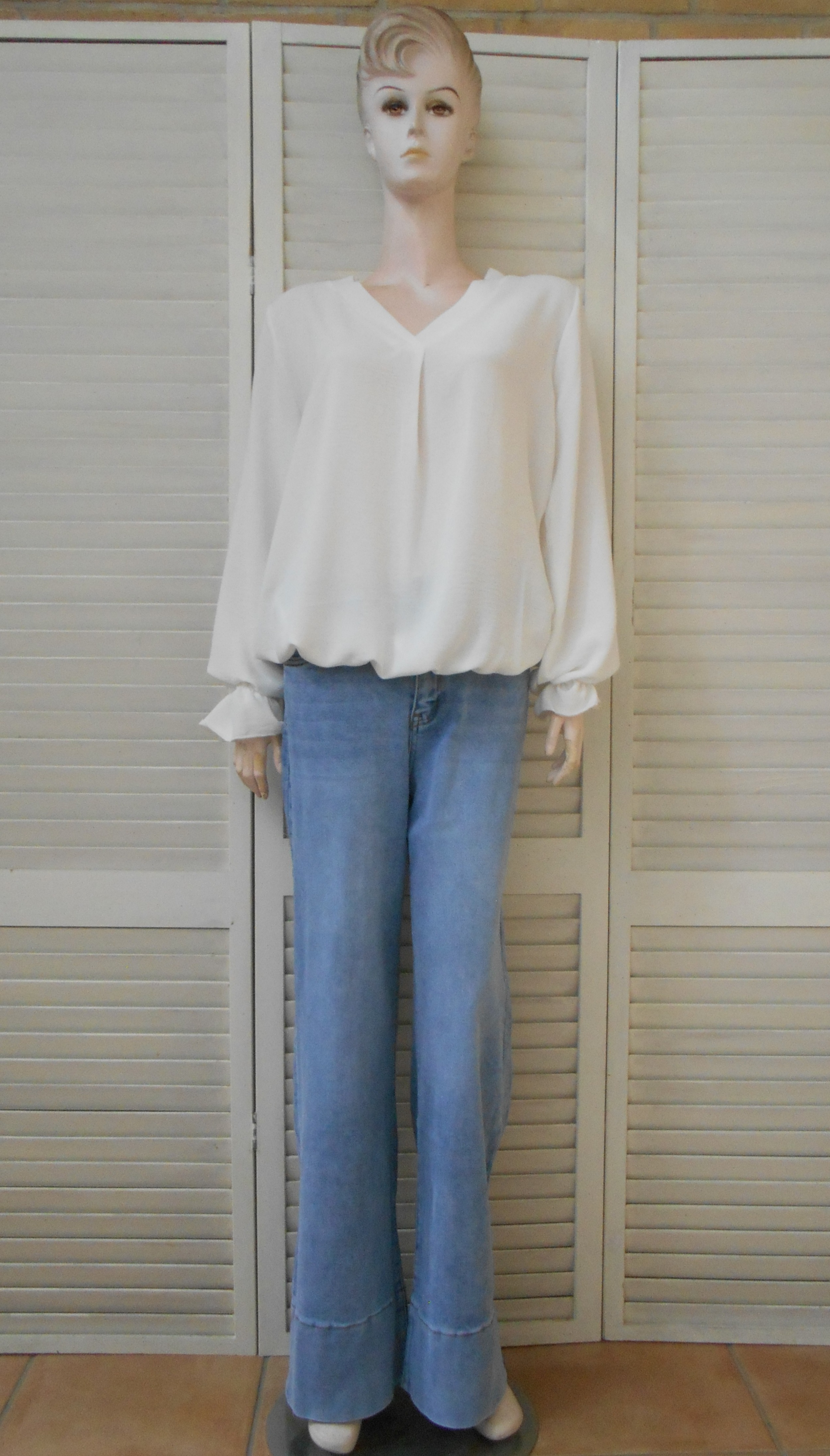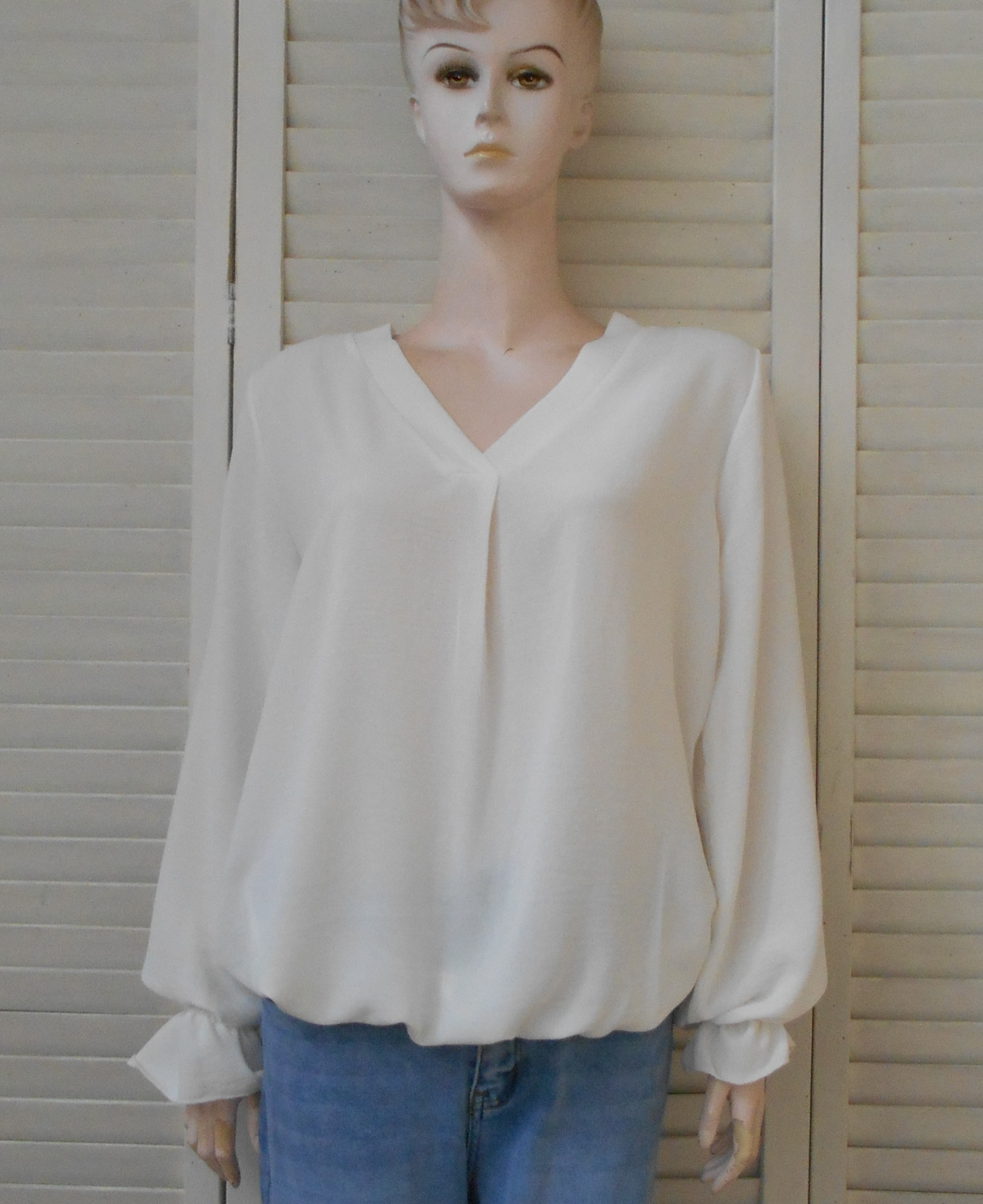 OLM51 - Dames V-hals Shirt - Off-white - Elastiek onderzijde