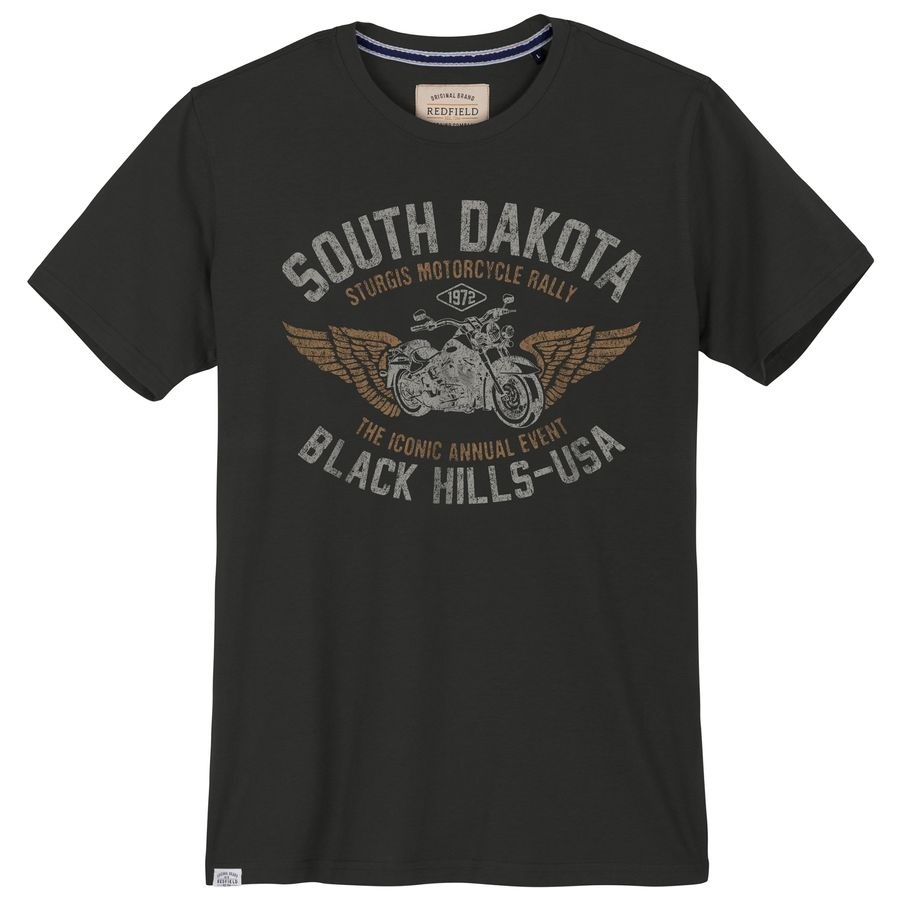 Ontdek het perfecte samenspel van comfort en stijl met dit stoere Redfield heren plussize T-shirt. Uitgevoerd in een tijdloze zwarte kleur en voorzien van een opvallende frontprint met de tekst “South Dakota – Black Hills USA”, geeft dit shirt jouw outfit een robuuste, casual uitstraling.