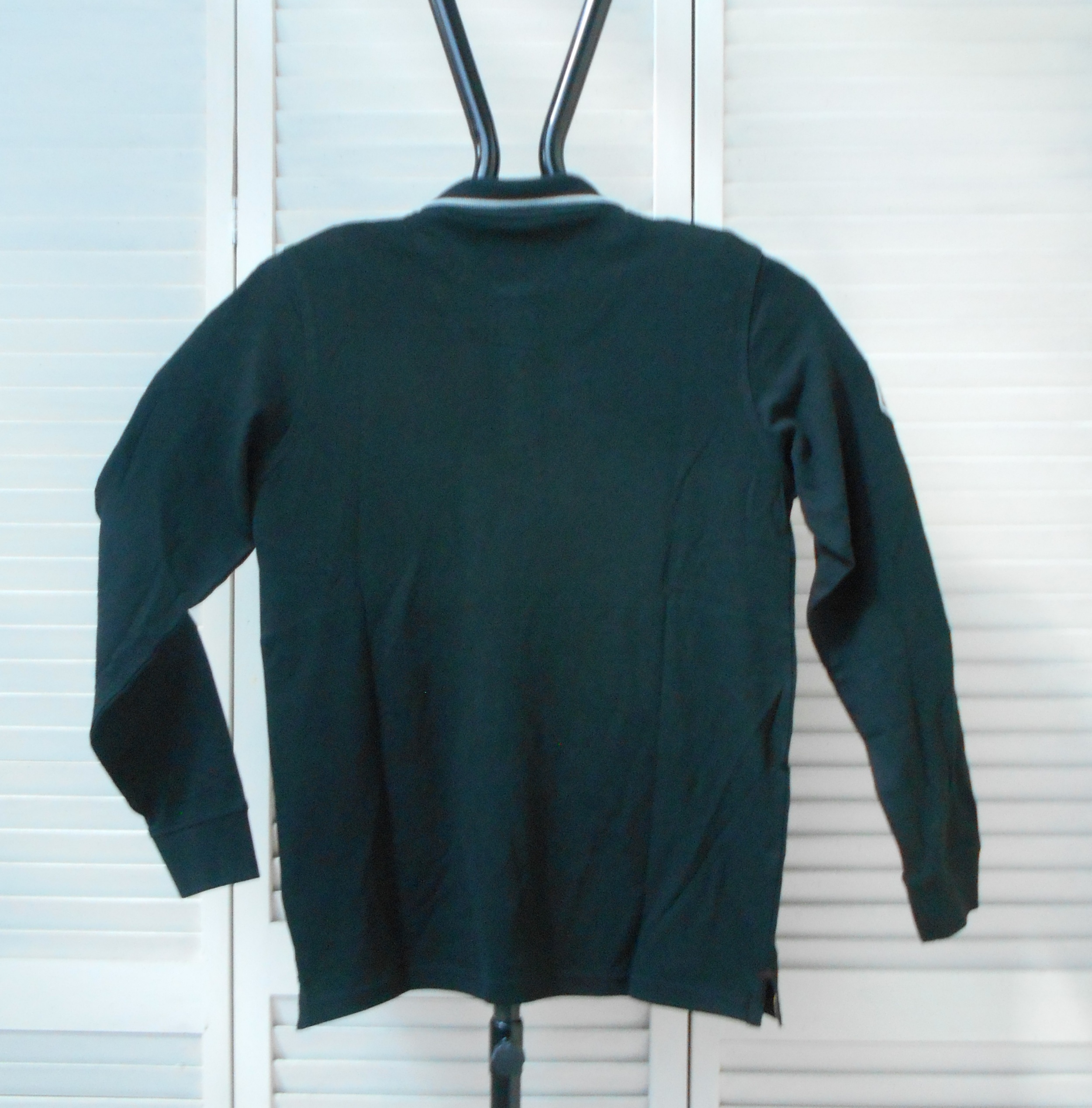De lange mouwen zijn afgewerkt met een boord, wat zorgt voor een nette uitstraling en een comfortabele pasvorm. De klassieke polo kraag is subtiel verfraaid met een stijlvol grijs biesje, waardoor het geheel een sportief en verzorgd accent krijgt. Op de borst is een kleine grijze print badge aangebracht, wat de polo een extra eigentijdse touch geeft zonder te overheersen.