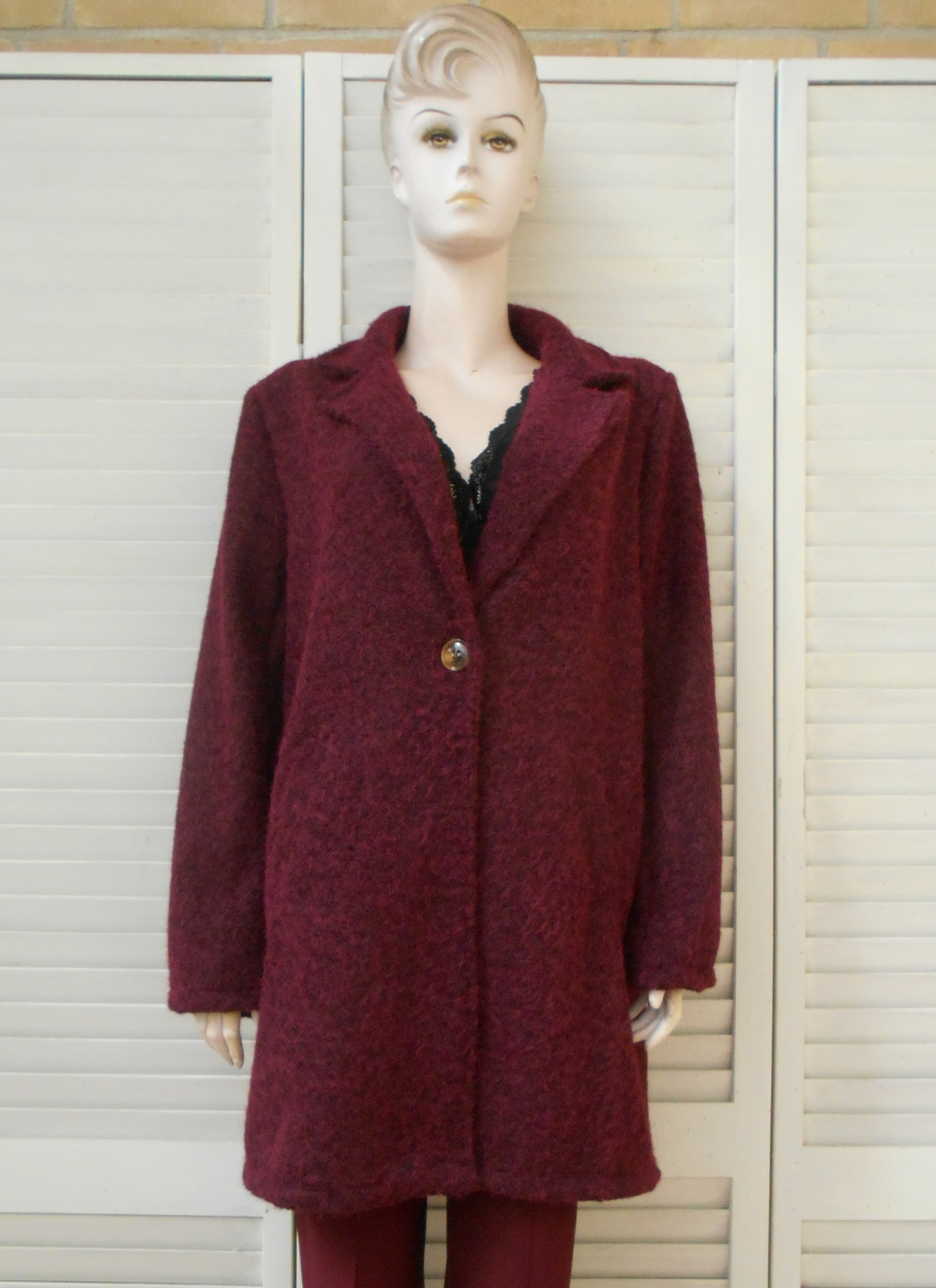 Voeg een vleugje elegantie en comfort toe aan je garderobe met deze prachtige dames parka uit de Unique New Collection. De jas is uitgevoerd in een diepe uni bordeauxkleur en vervaardigd uit een zachte bouclé stof van 100% polyester, wat zorgt voor een luxe uitstraling én een comfortabele pasvorm.