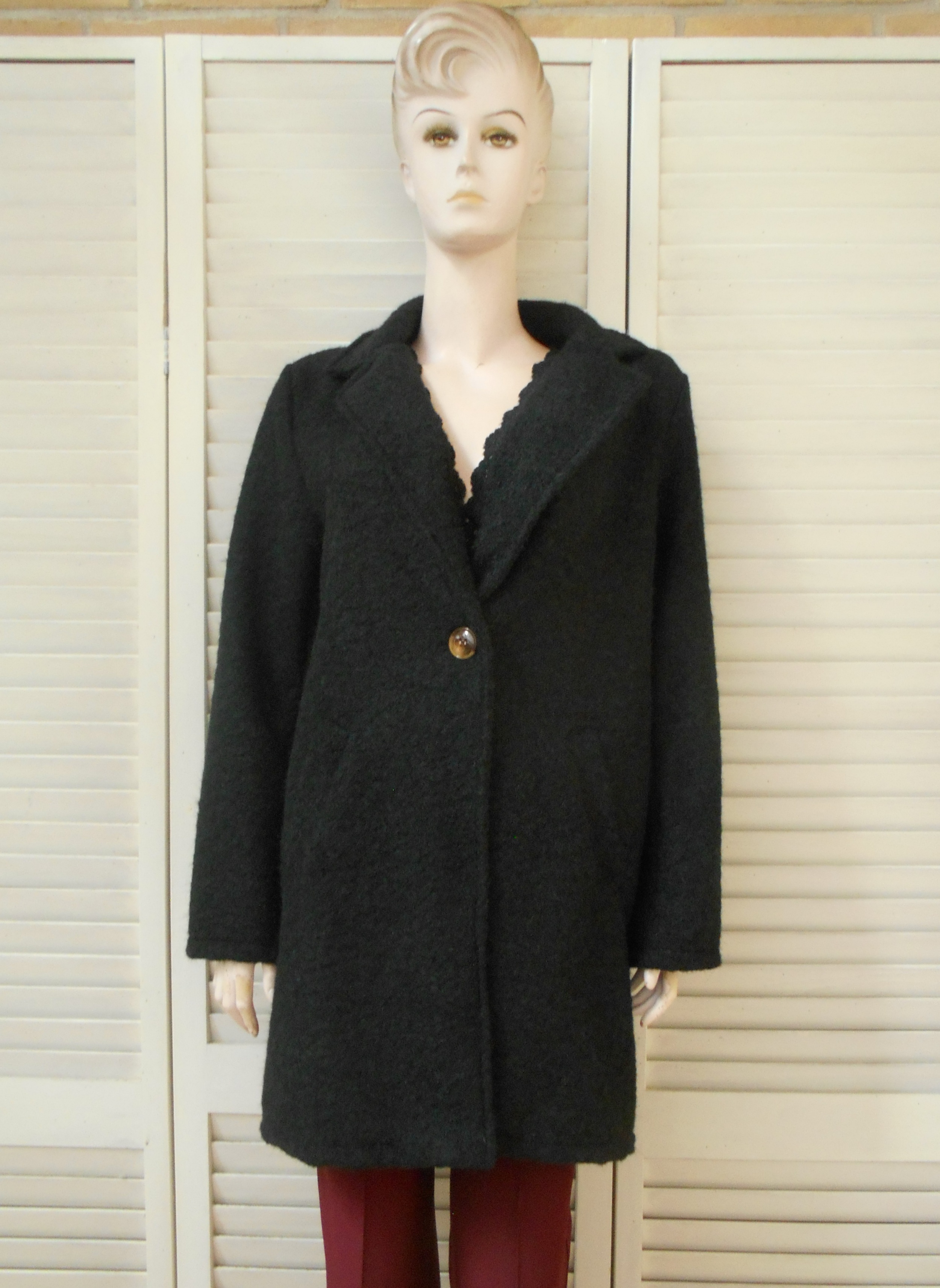 Unique - New Collection - Dames Parka - Zwart - Boucle - Steekzakken