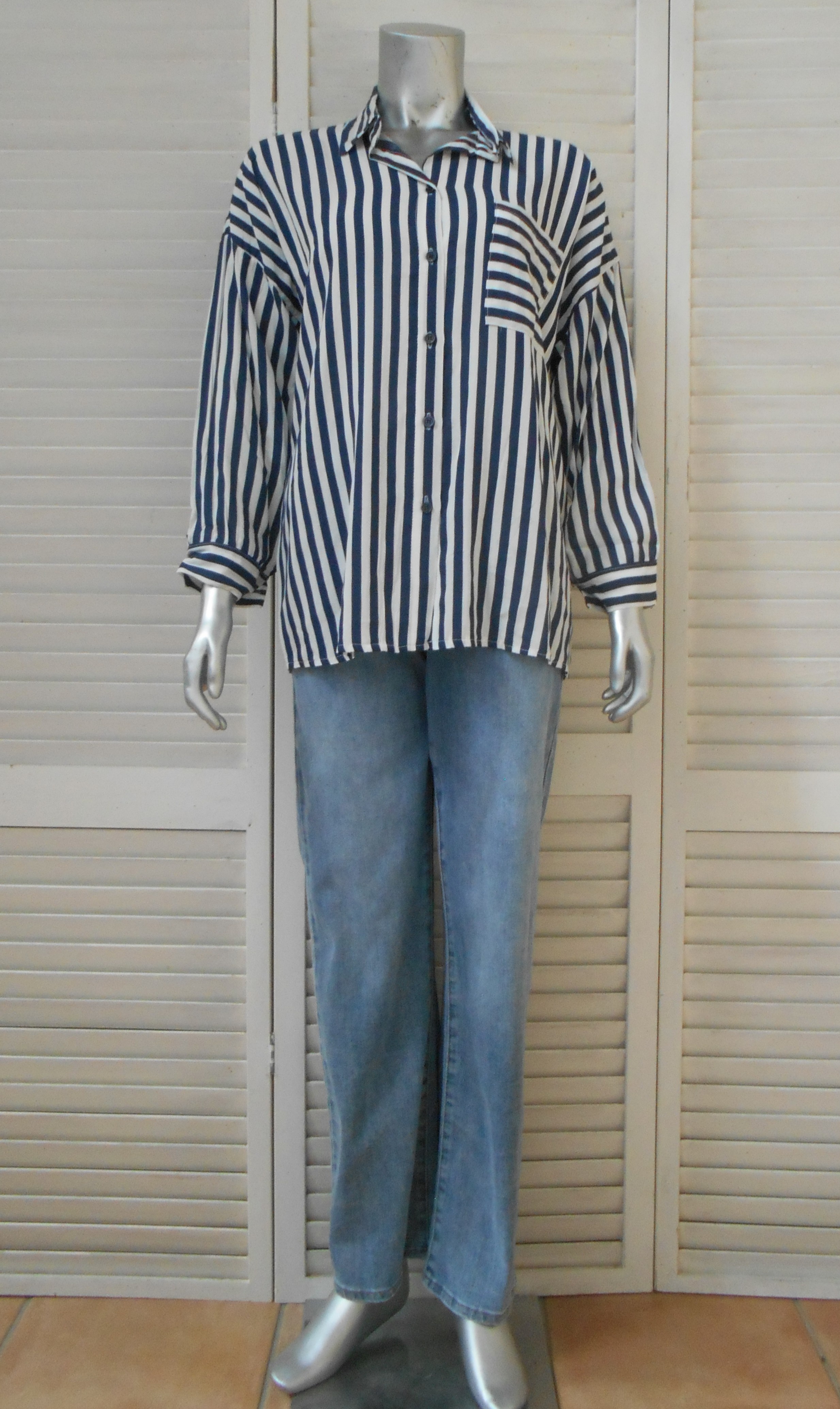 Vivi Mode - Blouse - Navy / Off-white - Verticaal Gestreept
