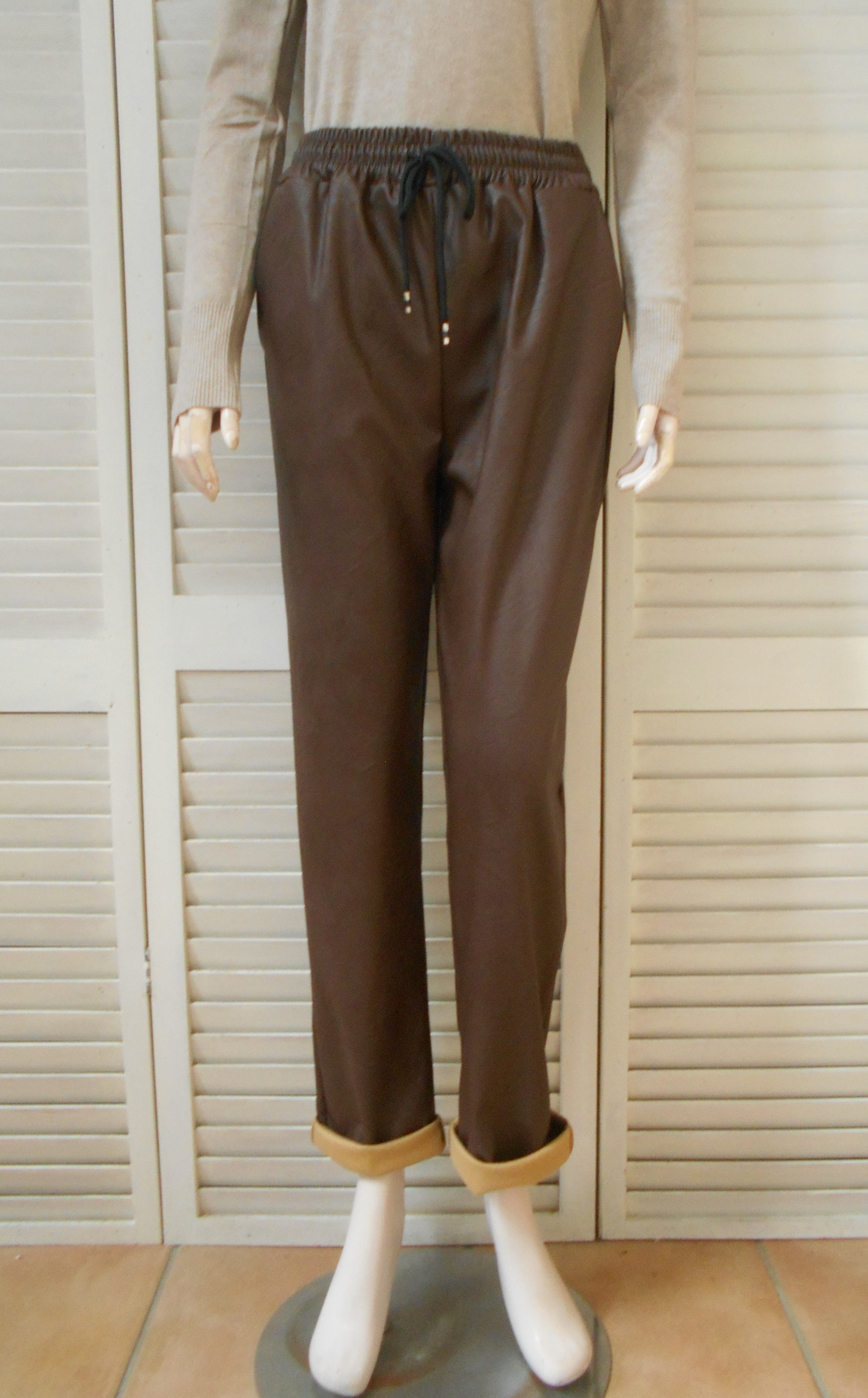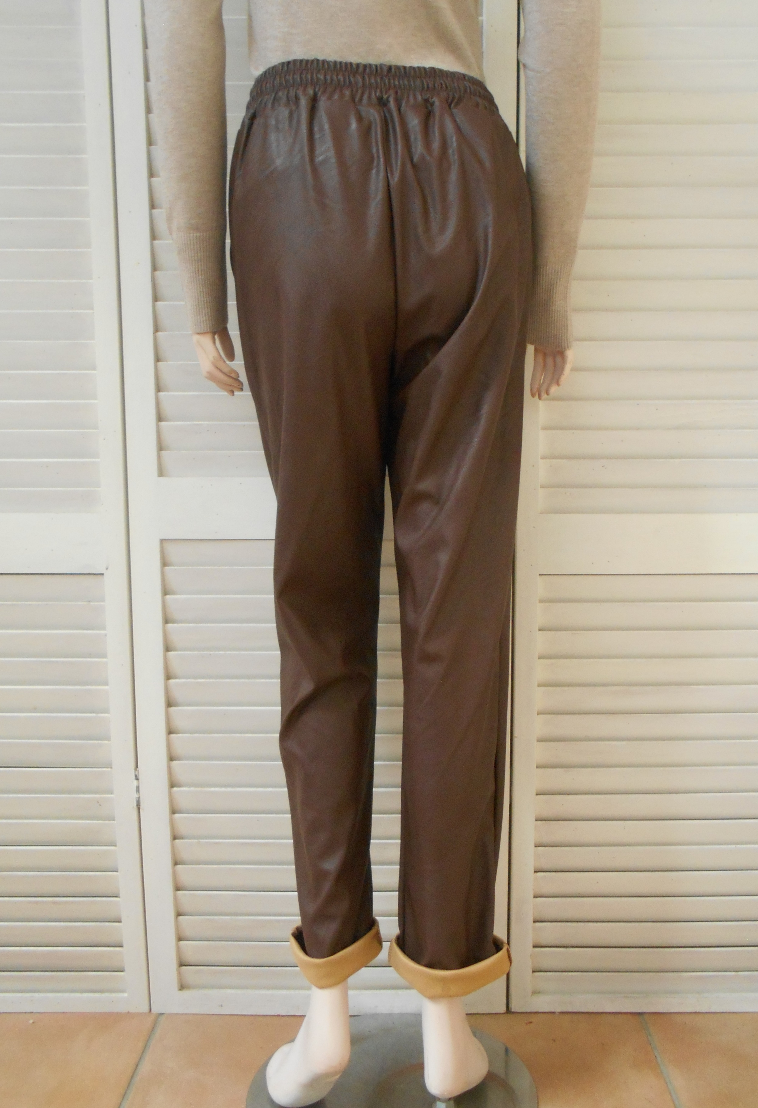 Willy-Z fashion - Dames Leatherlook Stretch Broek - Bruin - Elastische Taiileband Met Koord