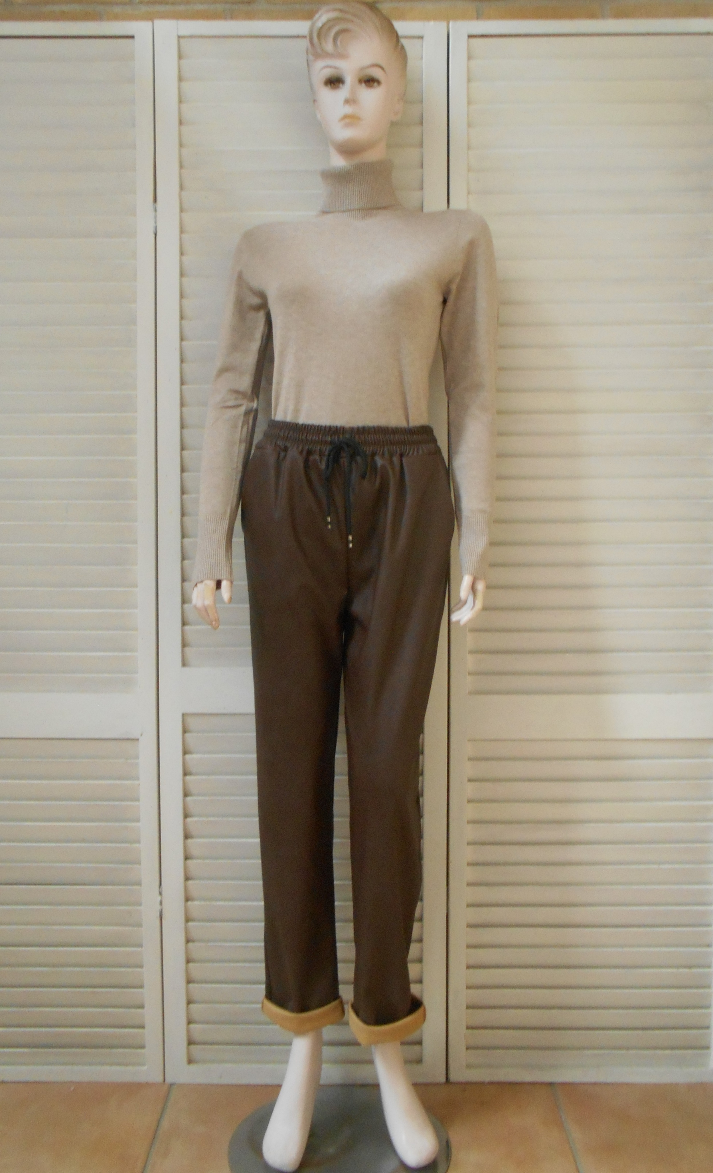 Stijlvol, comfortabel en veelzijdig: deze leatherlook stretch broek van Willy-Z Fashion mag niet ontbreken in je garderobe. Uitgevoerd in een klassieke uni bruine tint, combineert deze broek moeiteloos een trendy uitstraling met draagcomfort.