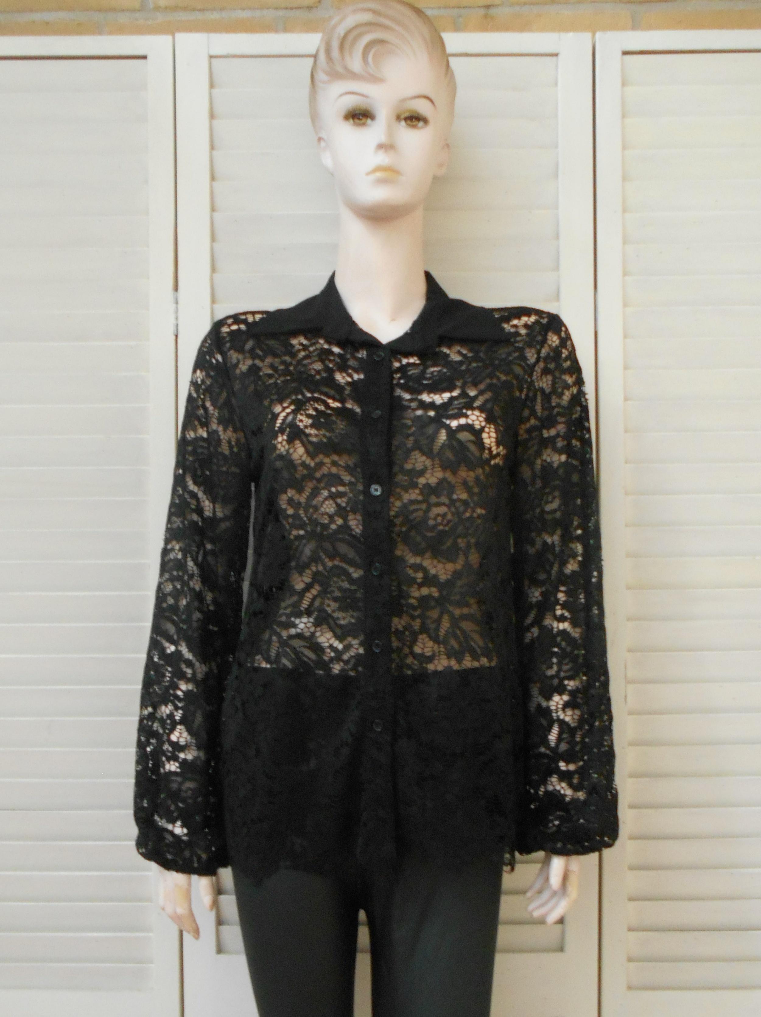 Elegantie in haar puurste vorm – de Willy-Z kanten dames blouse in uni zwart